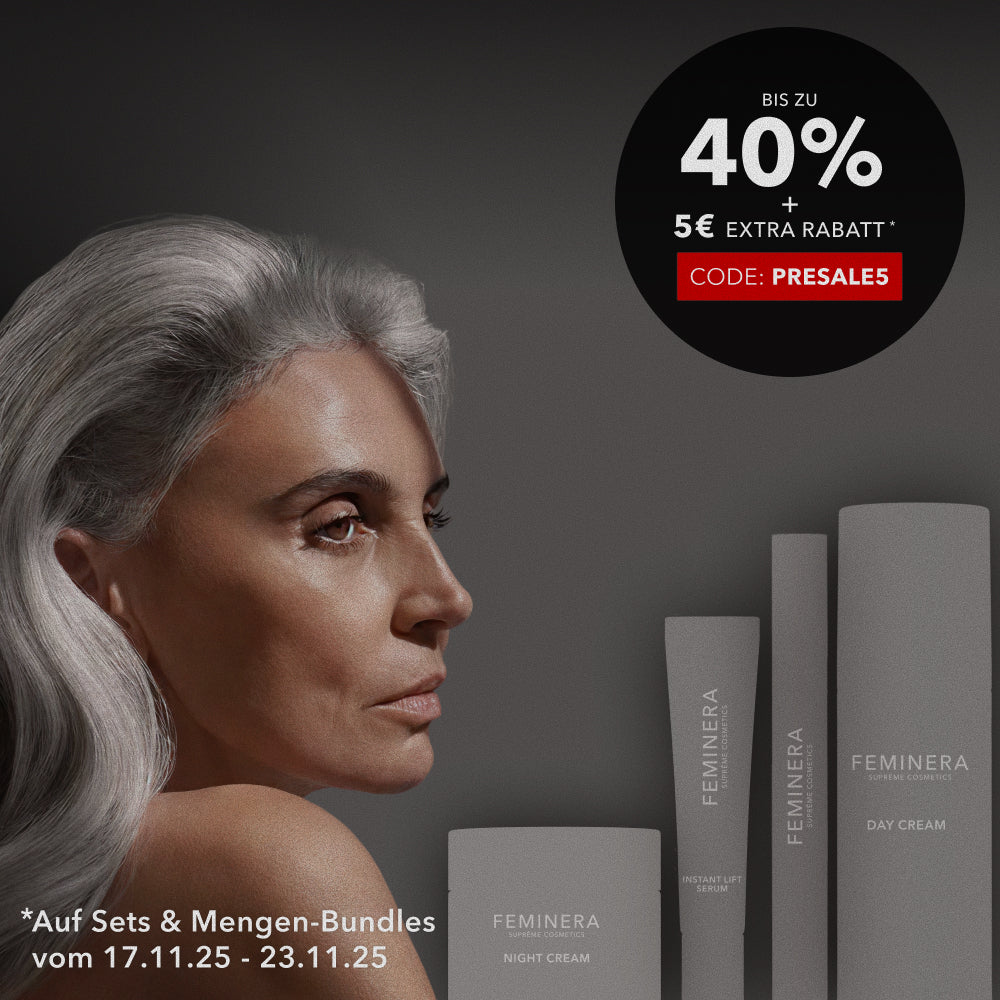 Jetzt im Black Week Pre-Sale hast du die Chance, dir unsere Premium-Hautpflege als Erste zum besten Preis des Jahres zu sichern. Profitiere von bis zu 40% Rabatt und erhalte mit dem Code PRESALE5 zusätzlich 5€ Rabatt-Vorteil auf Sets & Bundles. Entdecke Pflege, die deine Haut verdient – nur solange der Vorrat reicht.